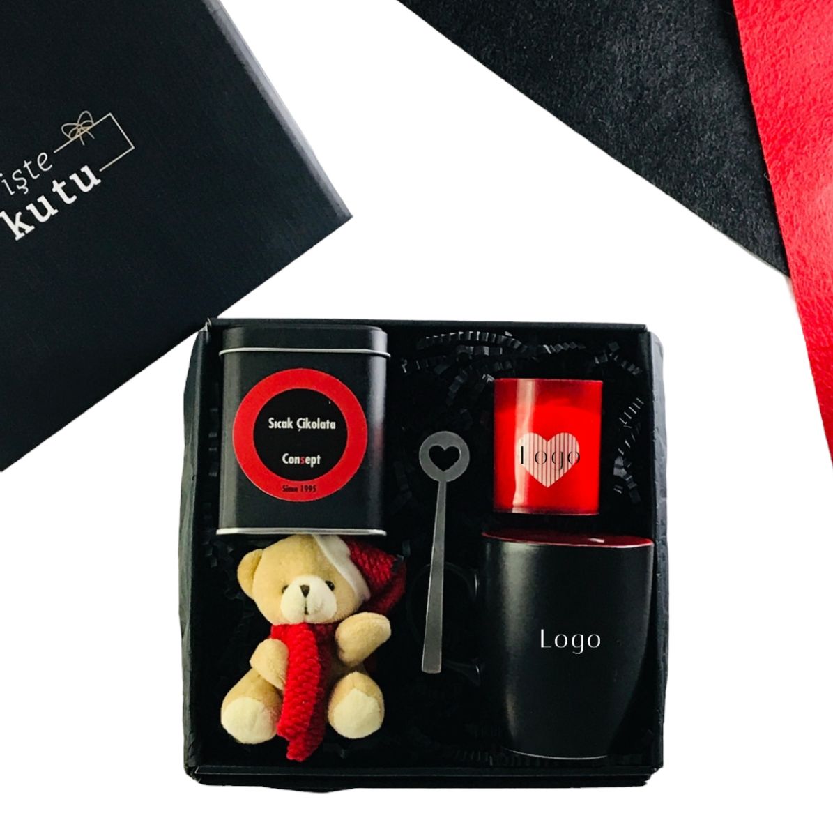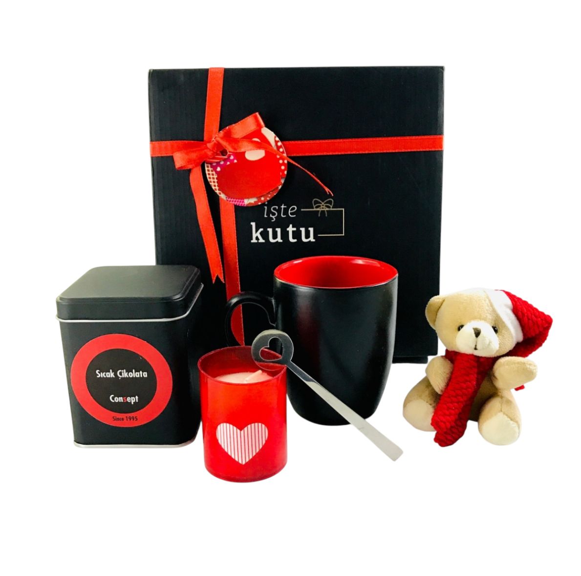 İçinde özenle seçilmiş kupa ve sıcak çikolata ile keyifli anlar, sevimli ayıcık kaşık ile küçük sürprizler, mum ile sıcak bir atmosfer yaratılıyor.